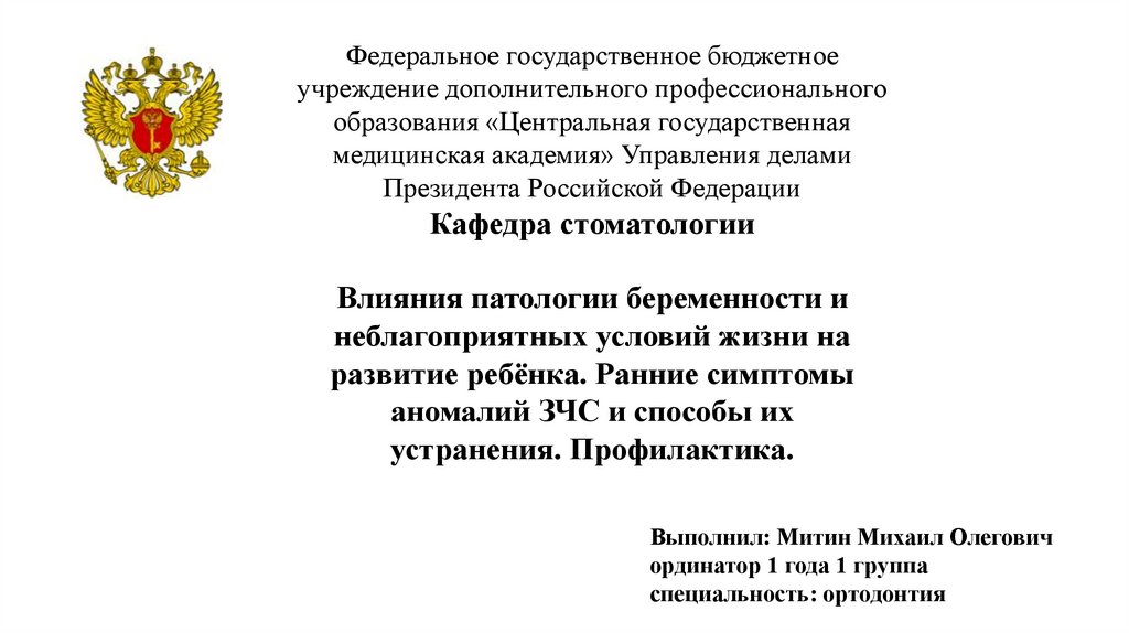 Влияния патологии беременности и неблагоприятных условий жизни на развитие ребёнка. Ранние симптомы аномалий ЗЧС и способы их устранения