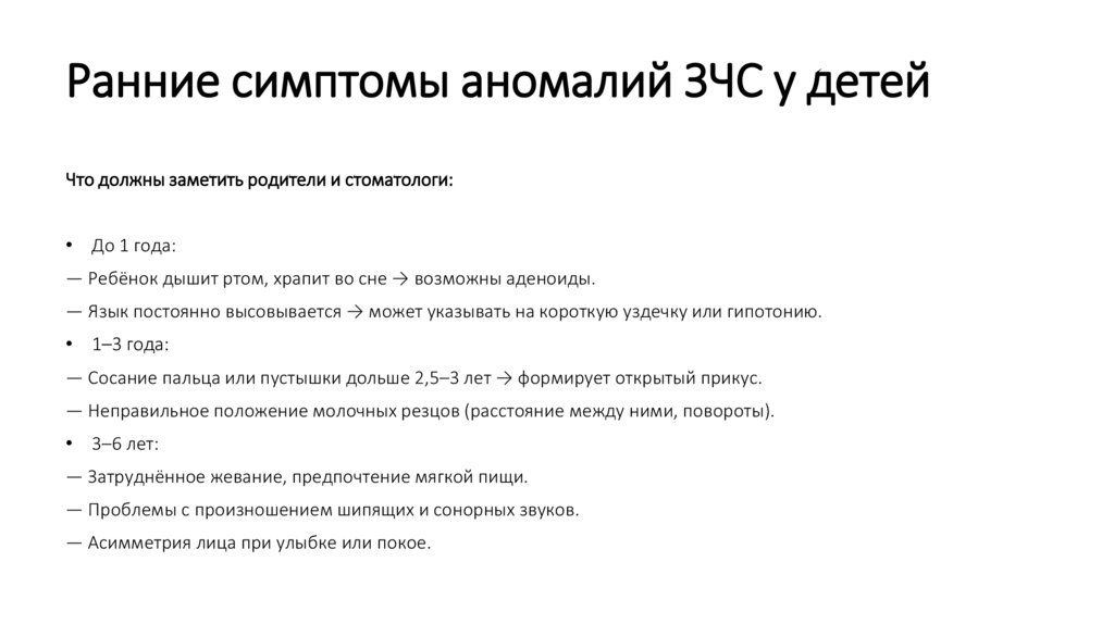 Ранние симптомы аномалий ЗЧС у детейЧто должны заметить родители и стоматологи: