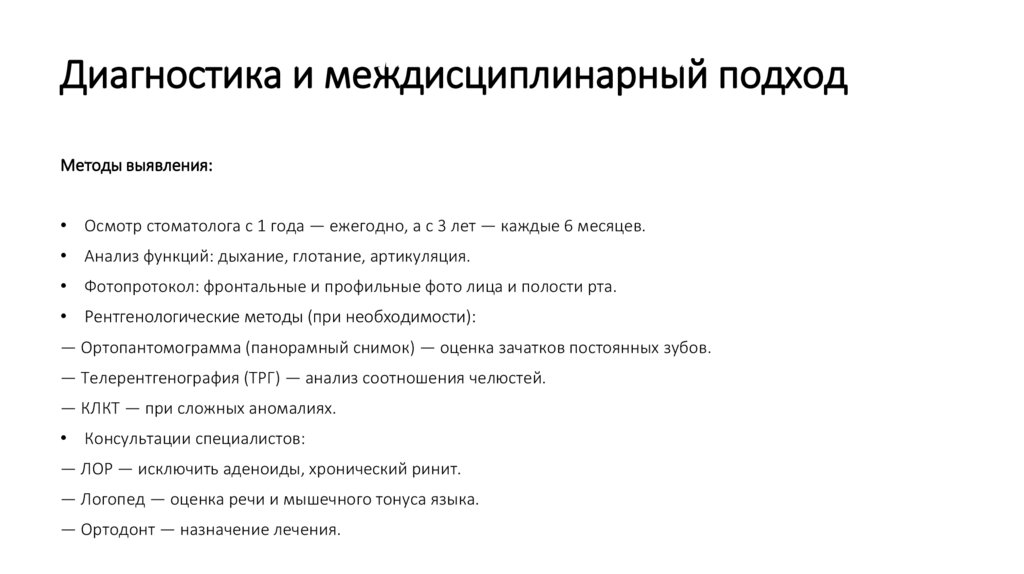Диагностика и междисциплинарный подходМетоды выявления: