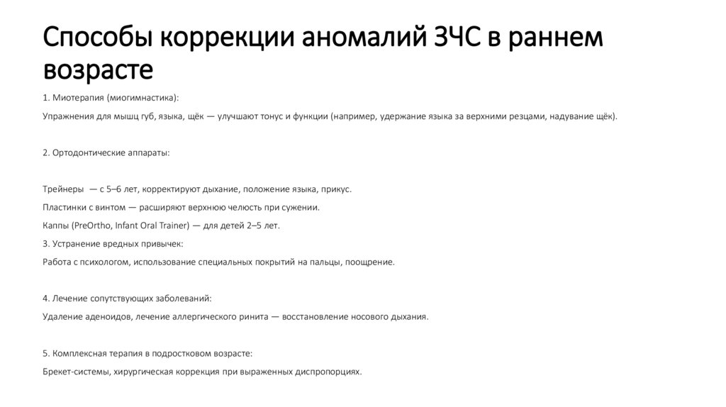 Способы коррекции аномалий ЗЧС в раннемвозрасте