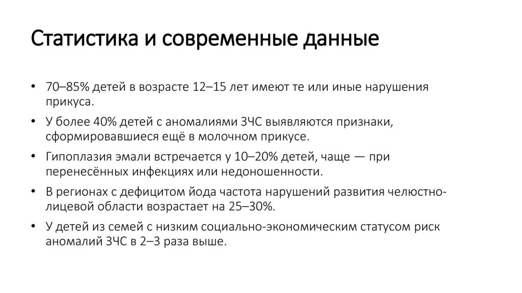 Статистика и современные данные• 70–85% детей в возрасте 12–15 лет имеют те или иные нарушения
