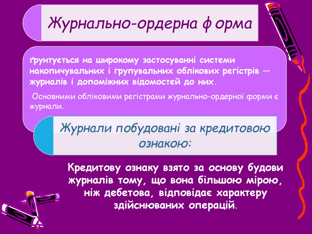 Журнально-ордерна формаґрунтується на широкому застосуванні системи