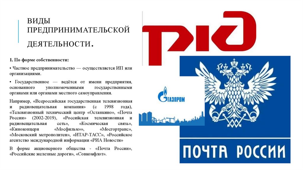 ВИДЫПРЕДПРИНИМАТЕЛЬСКОЙ