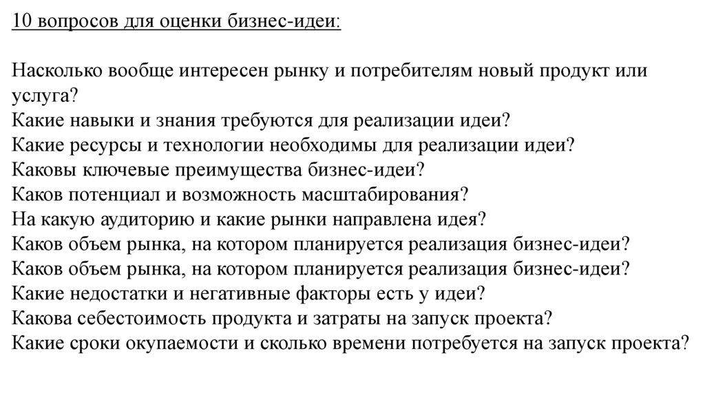 10 вопросов для оценки бизнес-идеи:Насколько вообще интересен рынку и потребителям новый продукт или