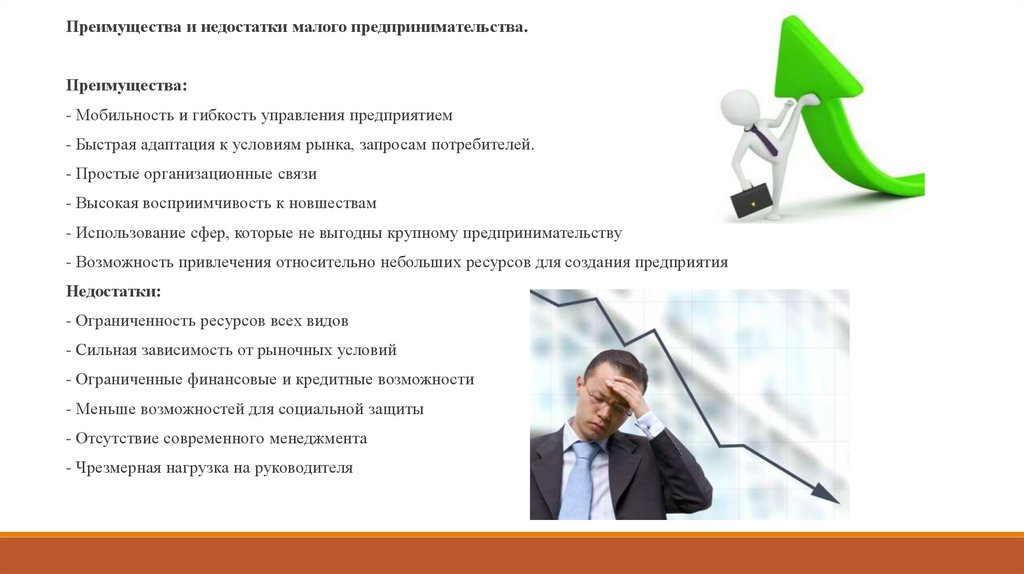 Преимущества и недостатки малого предпринимательства.Преимущества:
