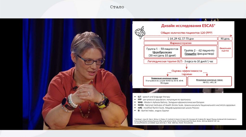 *Homberg V, Jianu DC, Stan A, Strilciuc Ș, Chelaru VF, Karliński M, Brainin M, Heiss WD, Muresanu DF, Enderby PM. Speech Therapy Combined With Cerebrolysin in