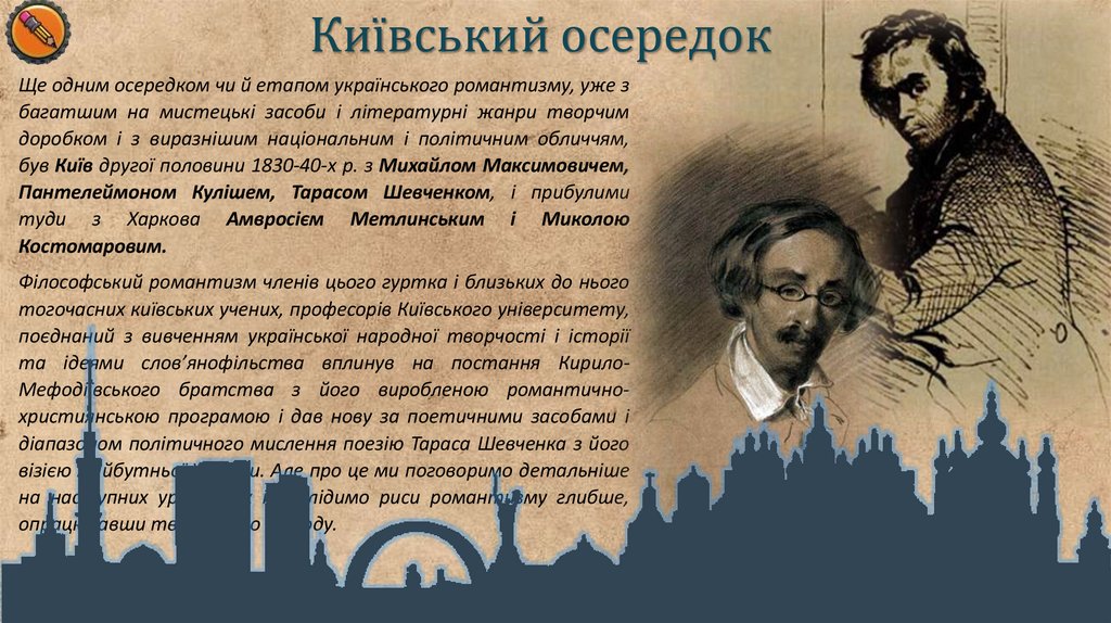 Київський осередокЩе одним осередком чи й етапом українського романтизму, уже з