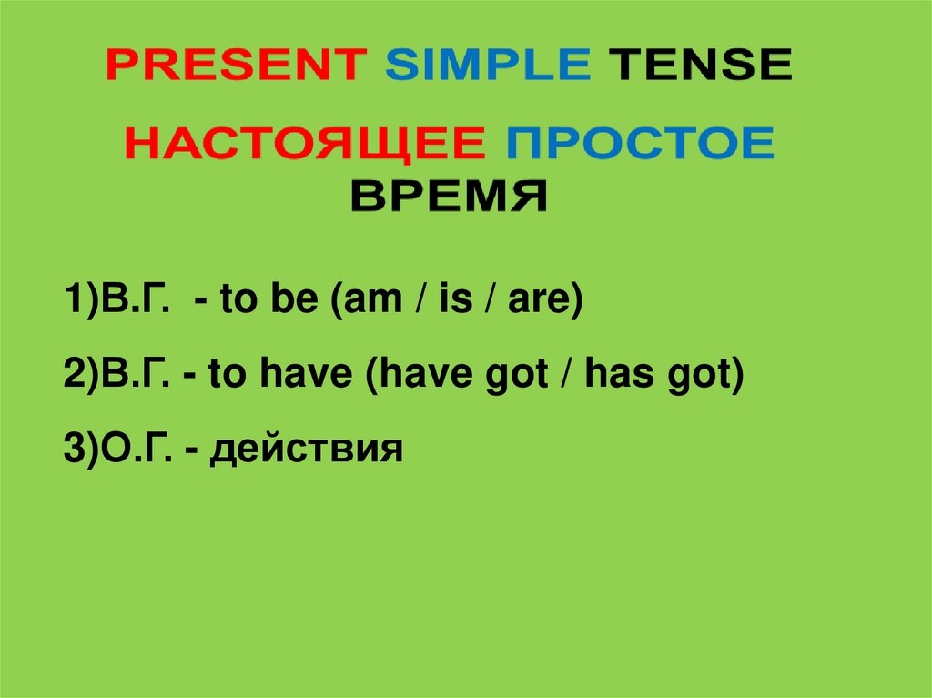 1)В.Г. - to be (am / is / are)2)В.Г. - to have (have got / has got)