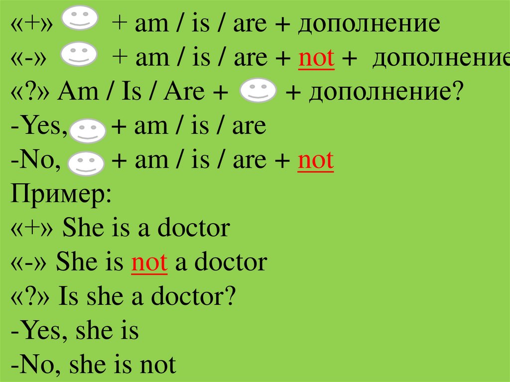 «+»+ am / is / are + дополнение