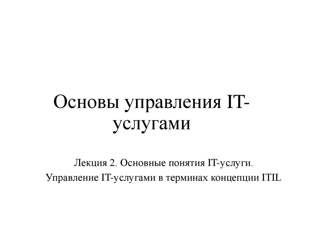 Основы управления ITуслугамиЛекция 2. Основные понятия IT-услуги.
