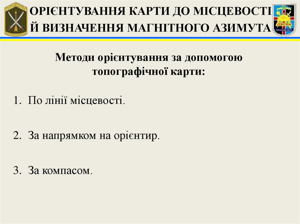 ТЕМА 1: ОРІЄНТУВАННЯ В ТАКТИЧНОМУСЕРЕДОВИЩІ З ВИКОРИСТАННЯМ КАРТИ