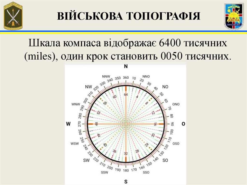 ВІЙСЬКОВА ТОПОГРАФІЯШкала компаса відображає 6400 тисячних