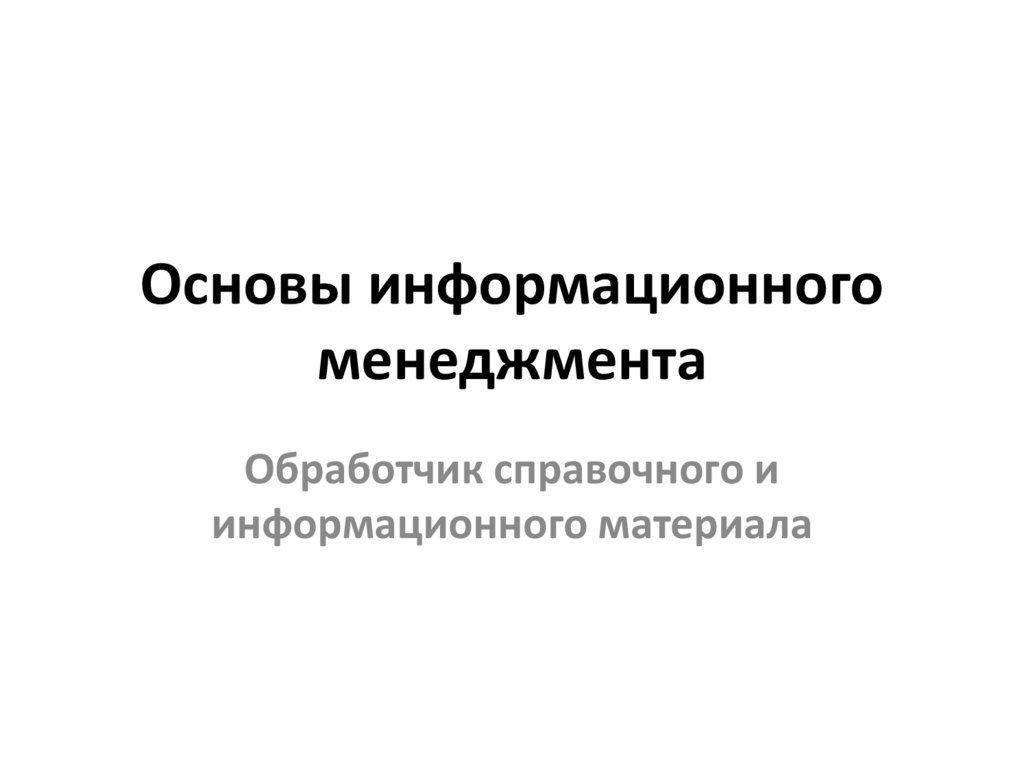 1. Основные базовые понятияинформационного менеджмента