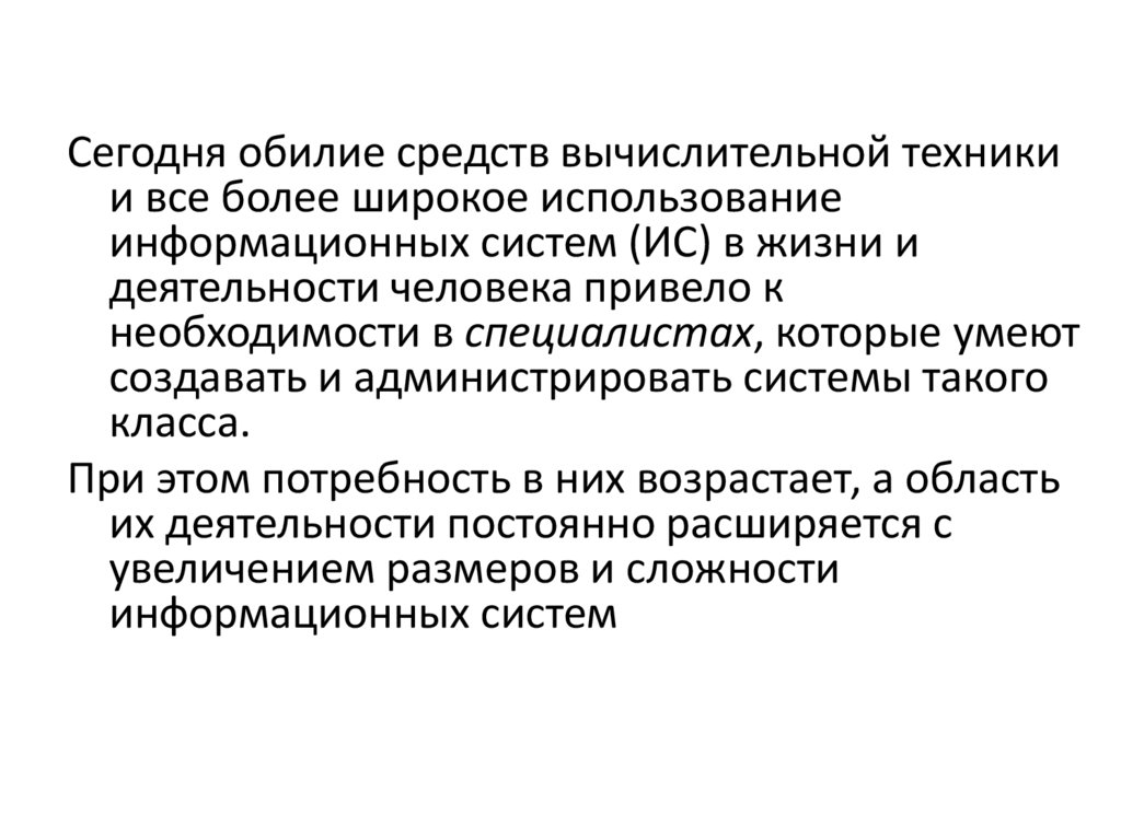 работающих в службах администрирования ИСдолжны быть достаточно высоки и разнообразны.