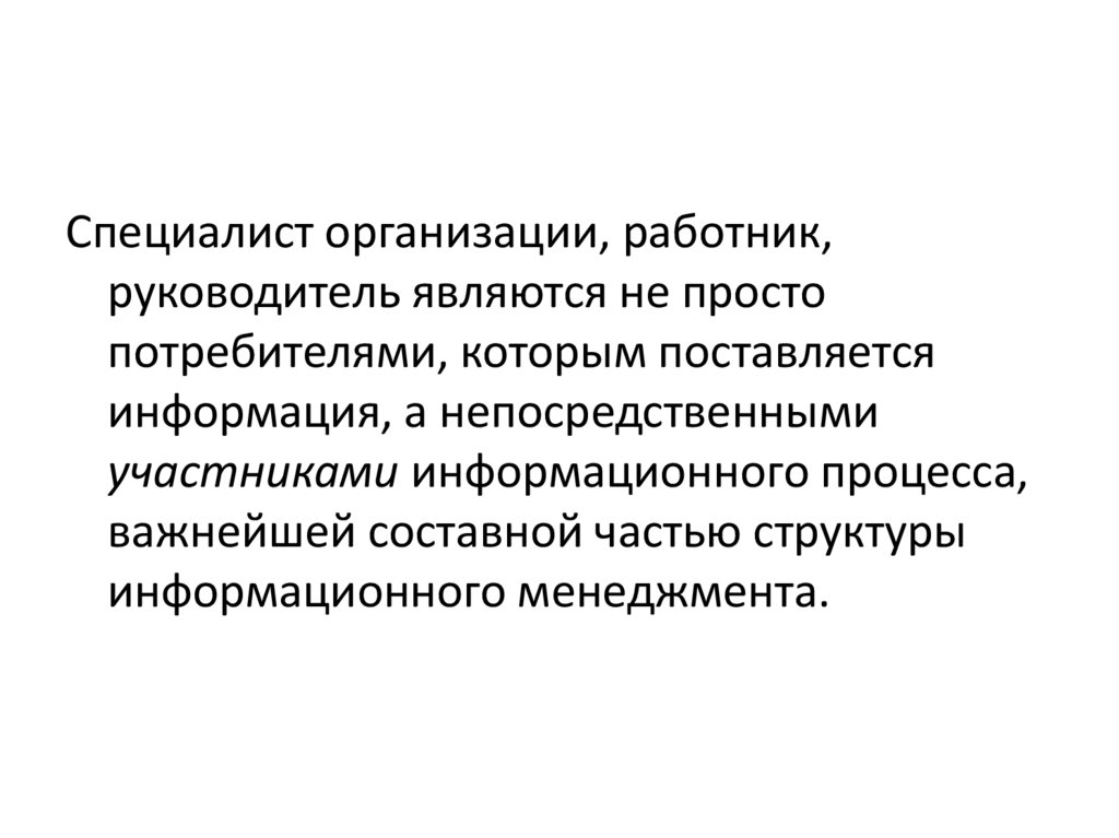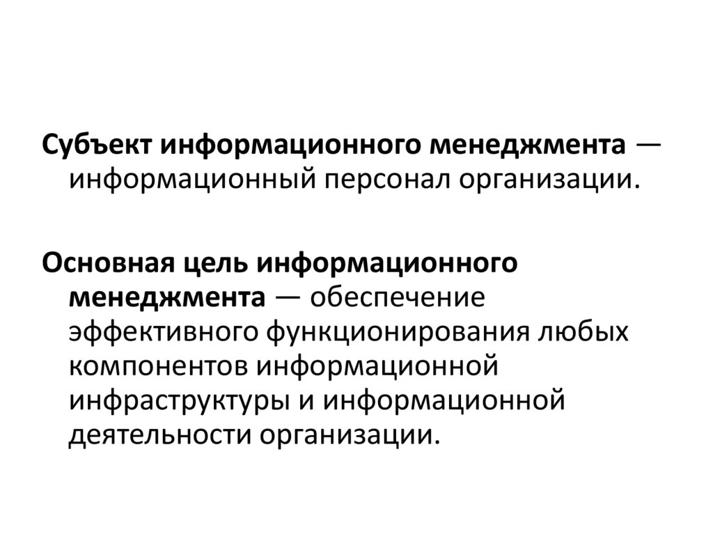 Субъект информационного менеджмента —информационный персонал организации.