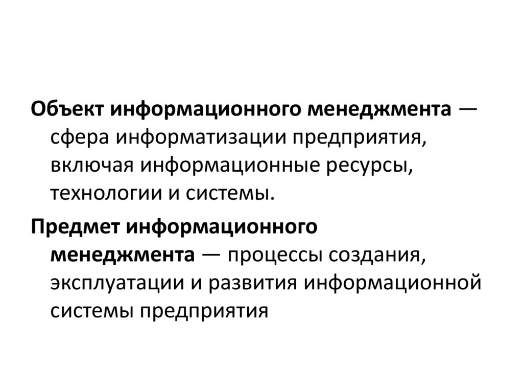 Объект информационного менеджмента —сфера информатизации предприятия,