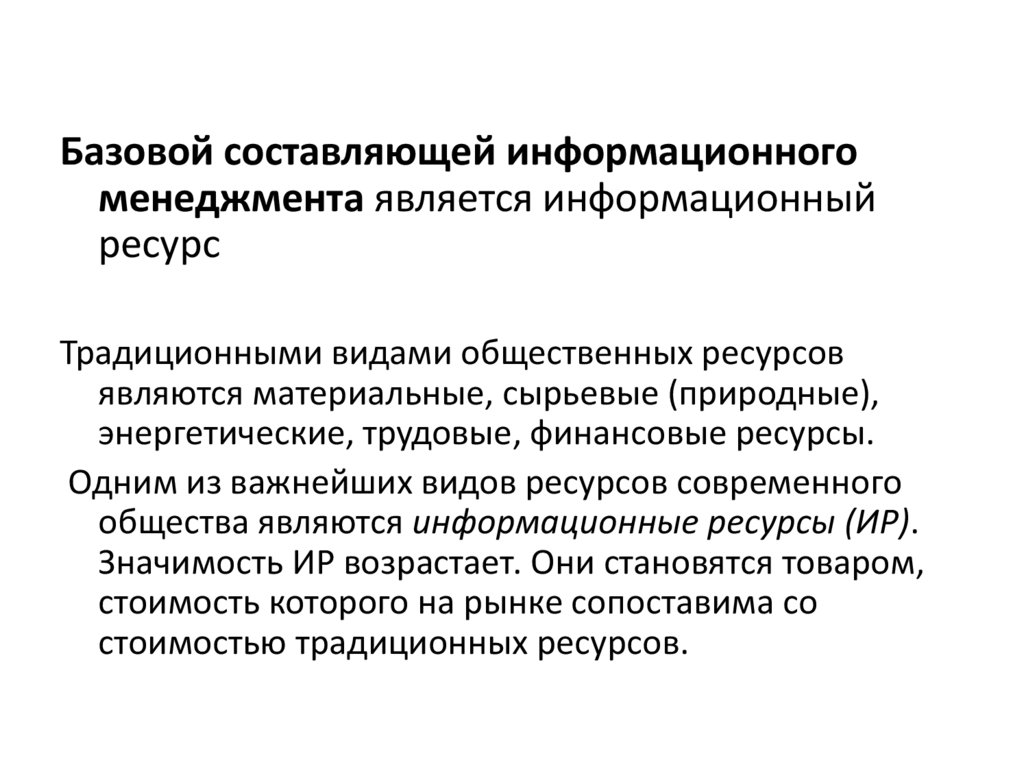 общества являются информационные ресурсы (ИР).