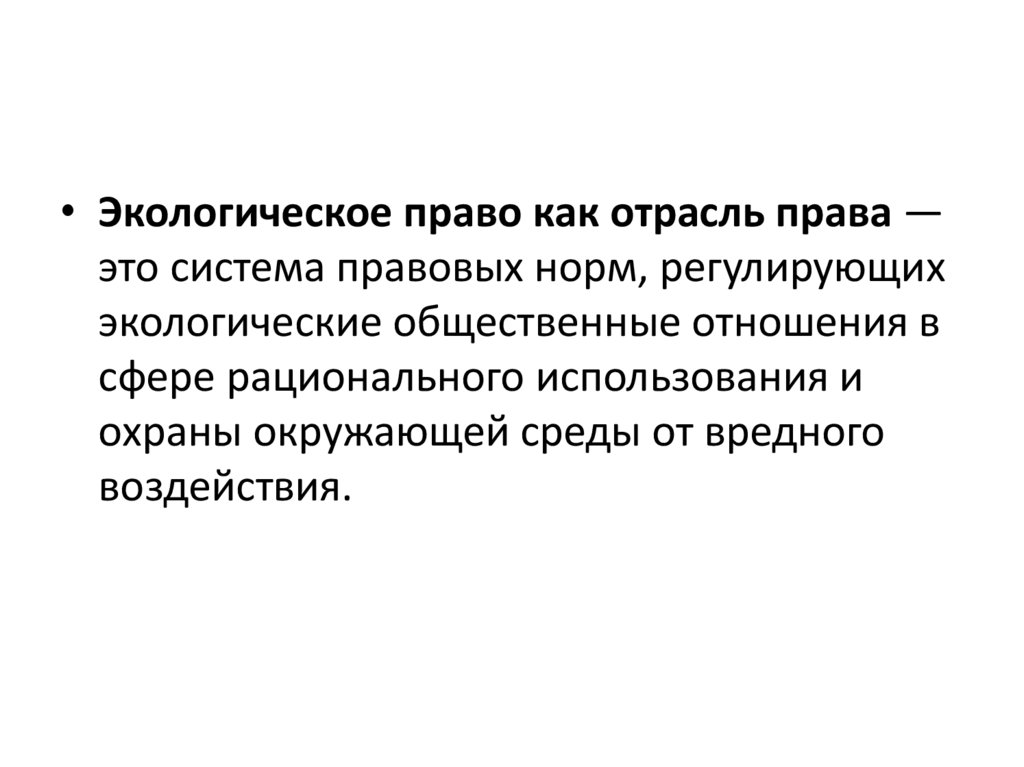 • Экологическое право как отрасль права —это система правовых норм, регулирующих