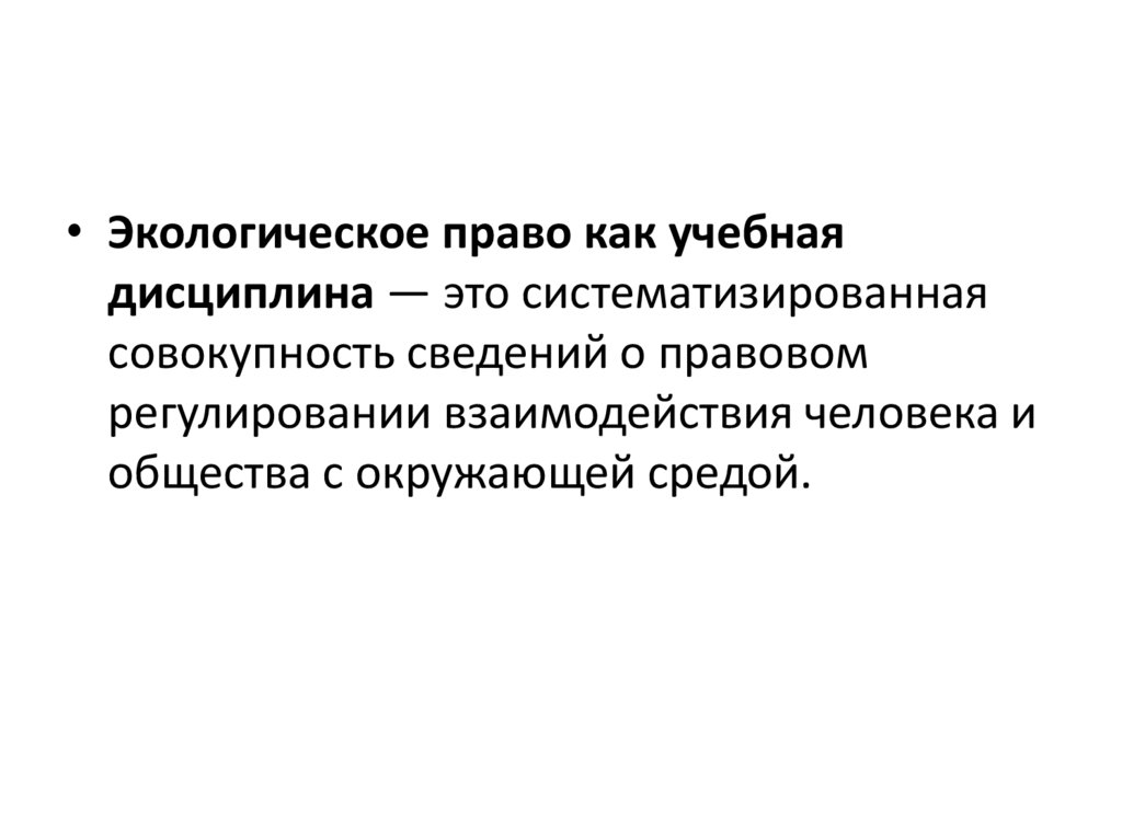 • Экологическое право как учебнаядисциплина — это систематизированная