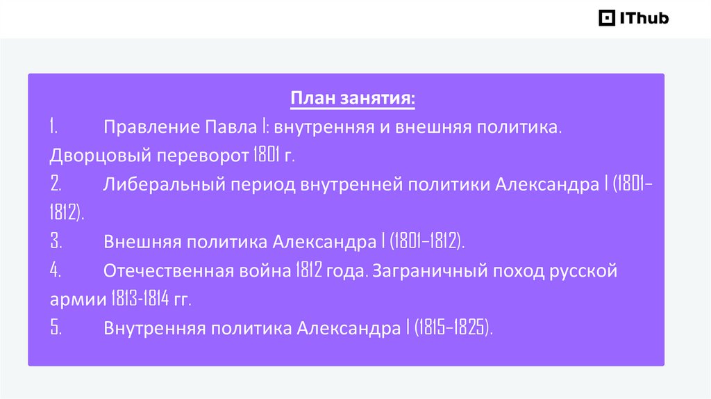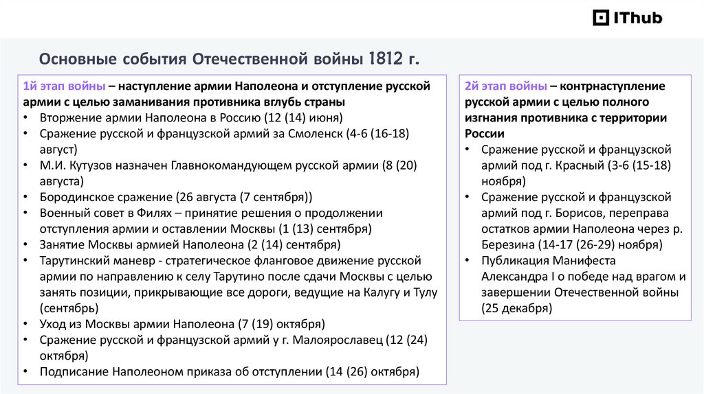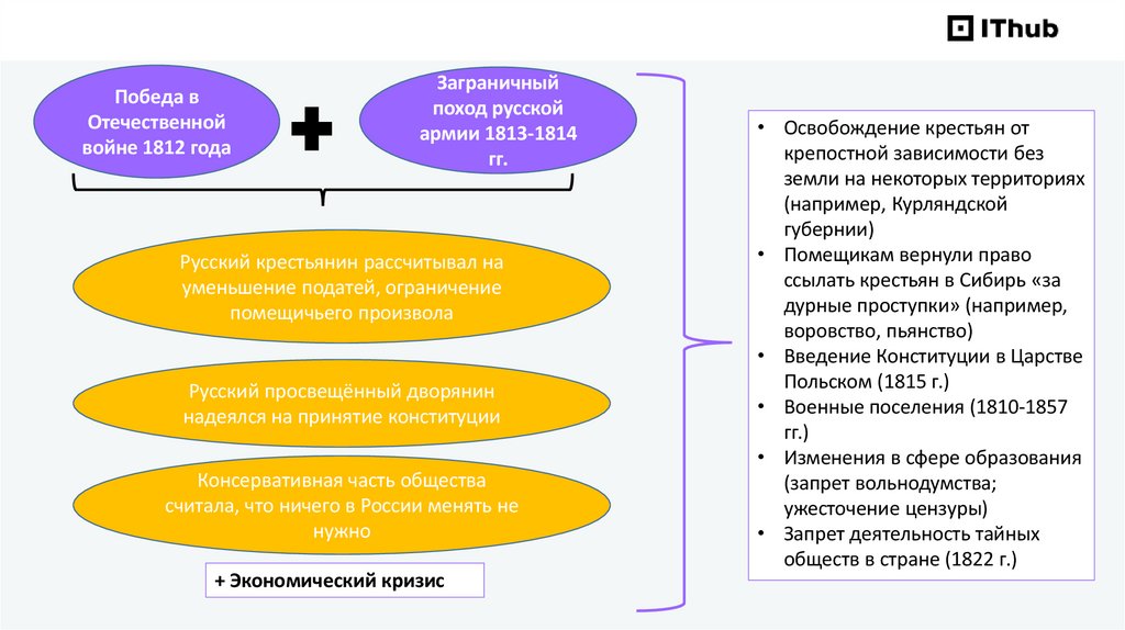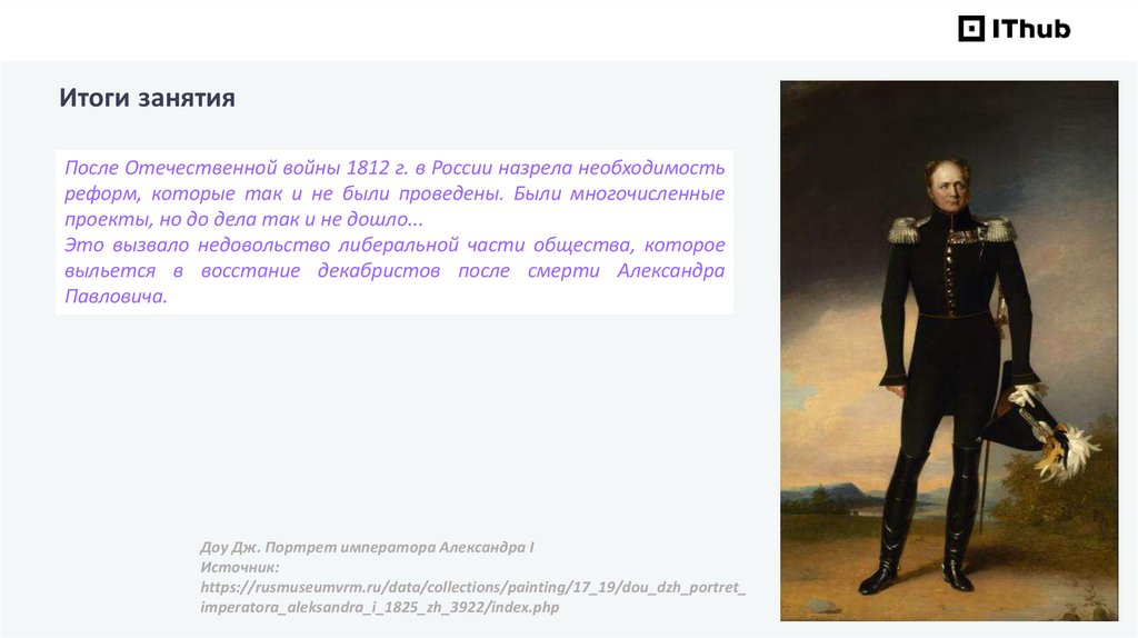 Итоги занятияПосле Отечественной войны 1812 г. в России назрела необходимость