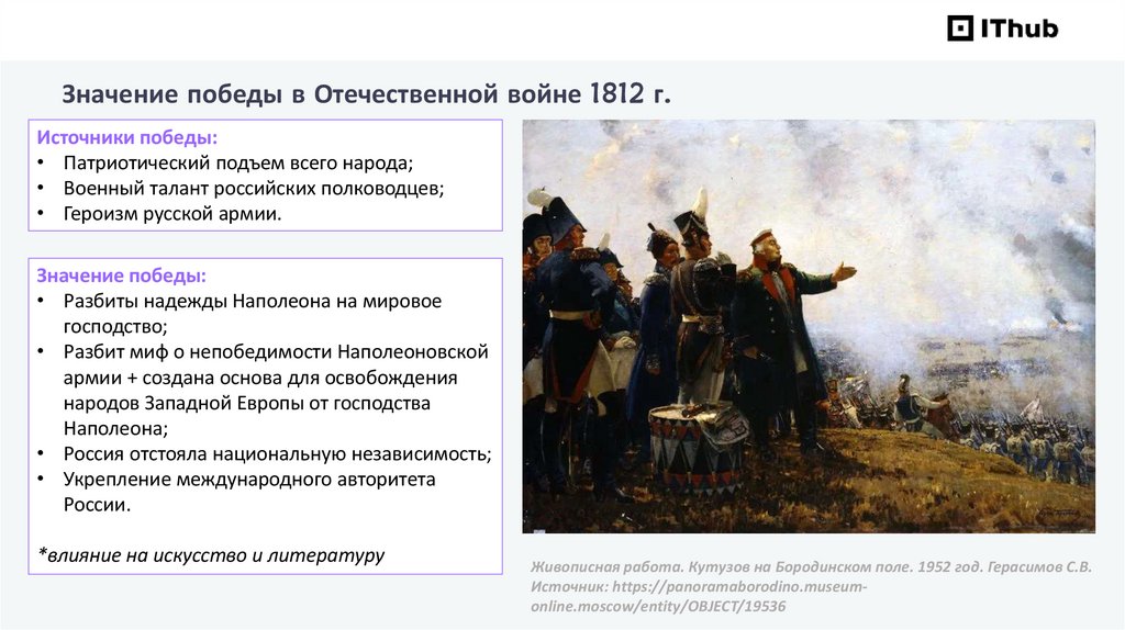 Значение победы в Отечественной войне 1812 г.Источники победы: