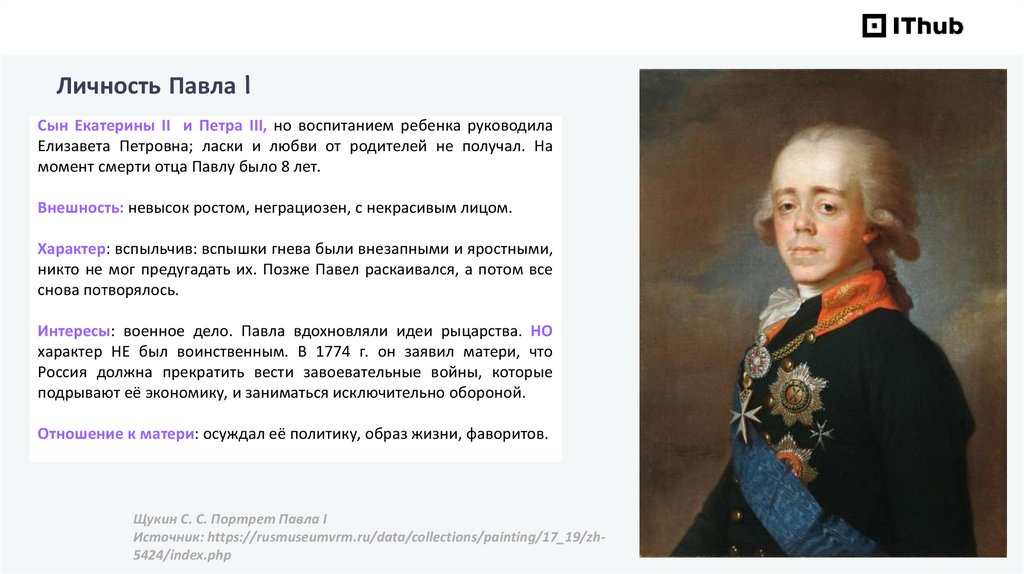 Личность Павла IСын Екатерины II и Петра III, но воспитанием ребенка руководила