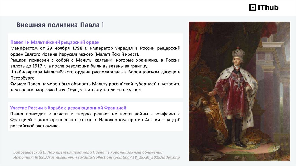 Внешняя политика Павла IПавел I и Мальтийский рыцарский орден