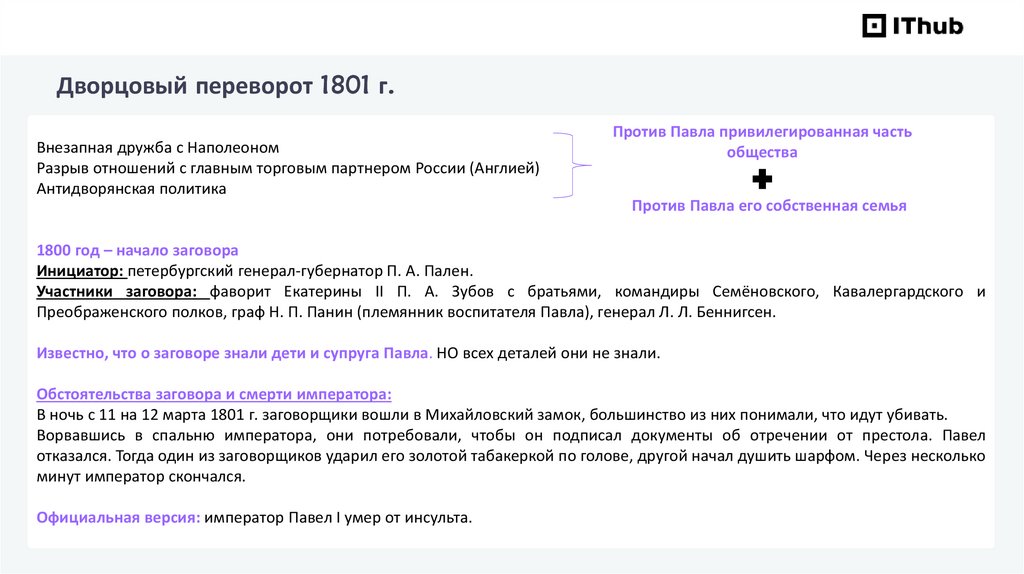 Павел приходит к власти и твердо решает не вести войны - конфликт с
