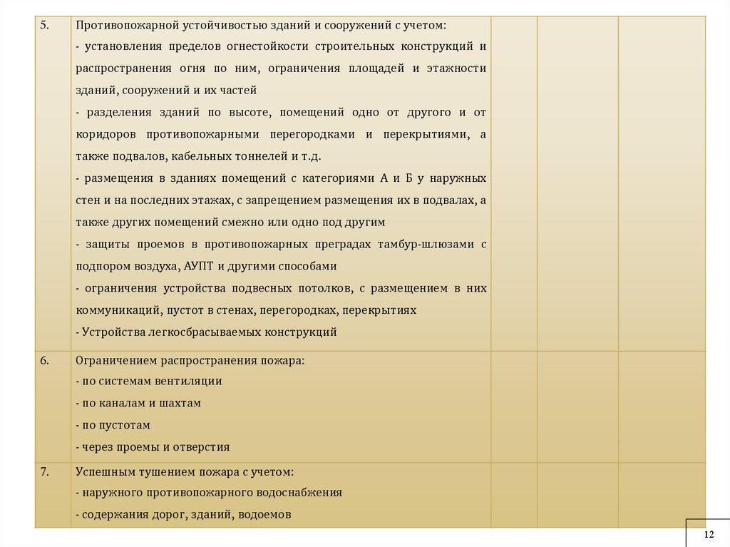 5.Противопожарной устойчивостью зданий и сооружений с учетом: