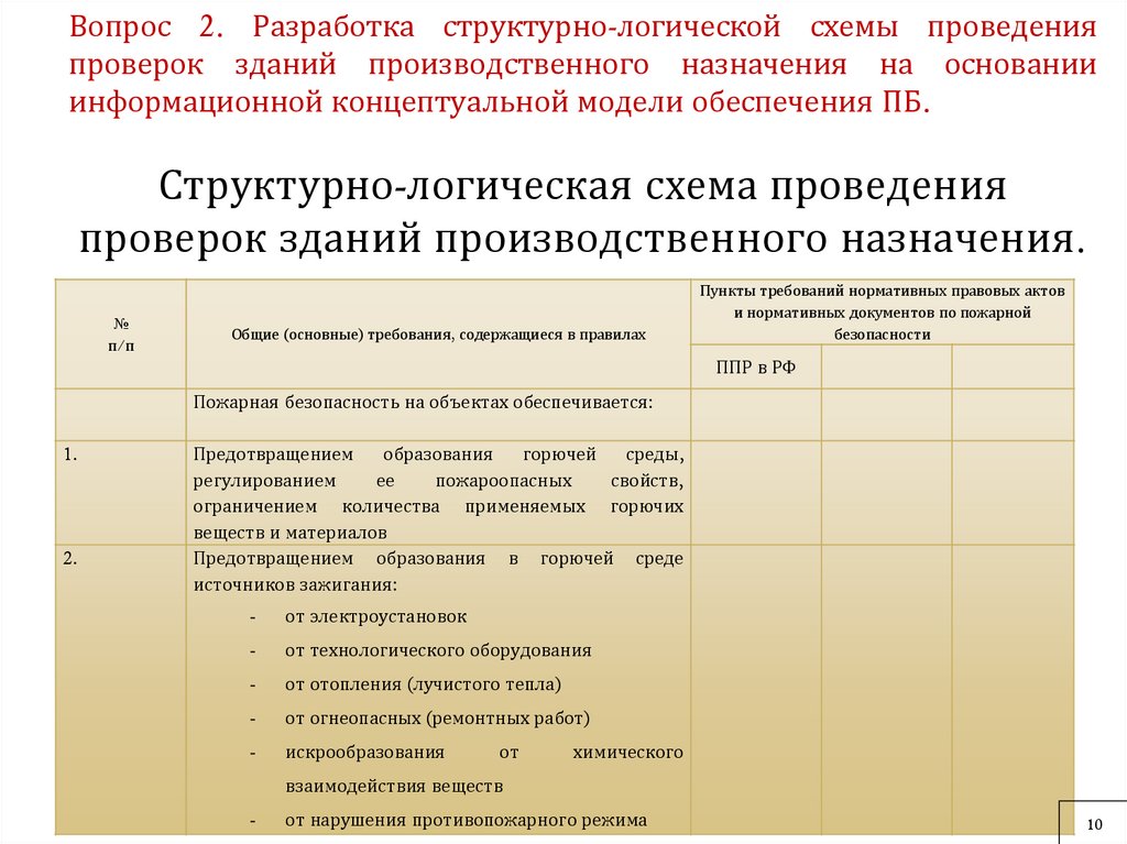 Вопрос 2. Разработка структурно-логической схемы проведенияпроверок зданий производственного назначения на основании
