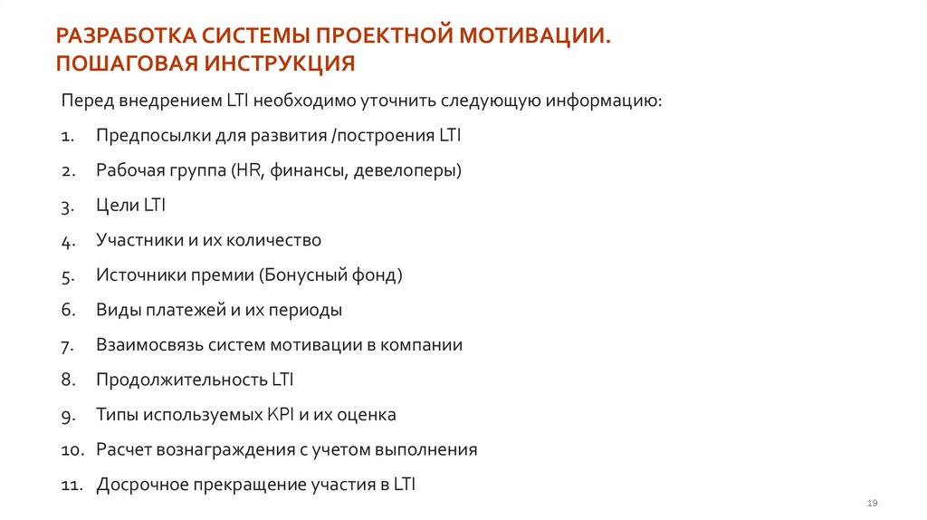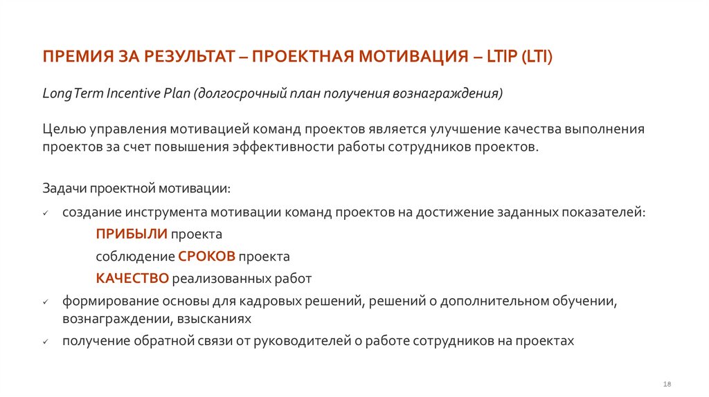 ПРЕМИЯ ЗА РЕЗУЛЬТАТ – ПРОЕКТНАЯ МОТИВАЦИЯ – LTIP (LTI)Long Term Incentive Plan (долгосрочный план получения вознаграждения)
