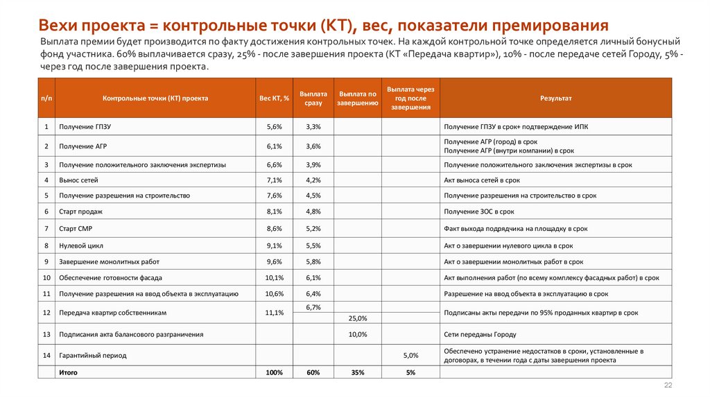 контрольным точкам проекта Бонус привязан к контрольным
