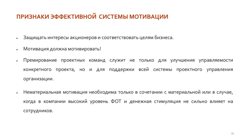 ПРИЗНАКИ ЭФФЕКТИВНОЙ СИСТЕМЫ МОТИВАЦИИЗащищать интересы акционеров и соответствовать целям бизнеса.