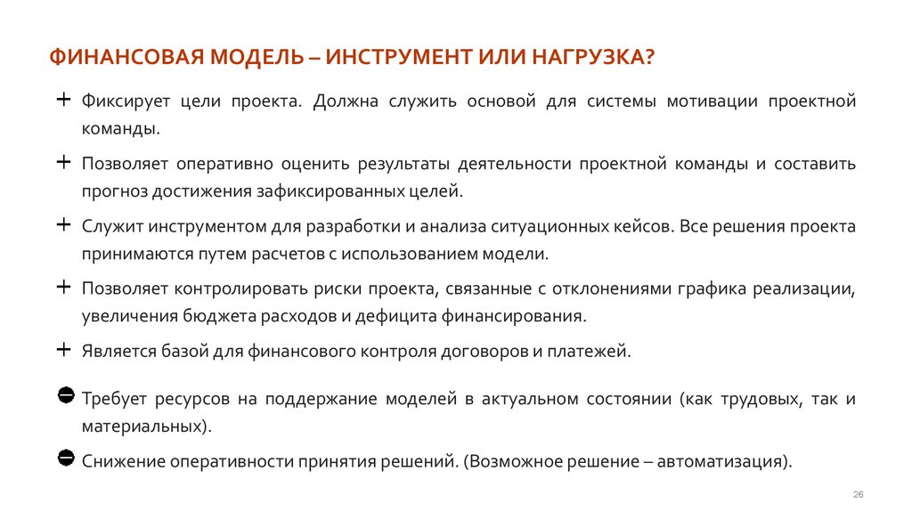 ФИНАНСОВАЯ МОДЕЛЬ – ИНСТРУМЕНТ ИЛИ НАГРУЗКА?Фиксирует цели проекта. Должна служить основой для системы мотивации проектной