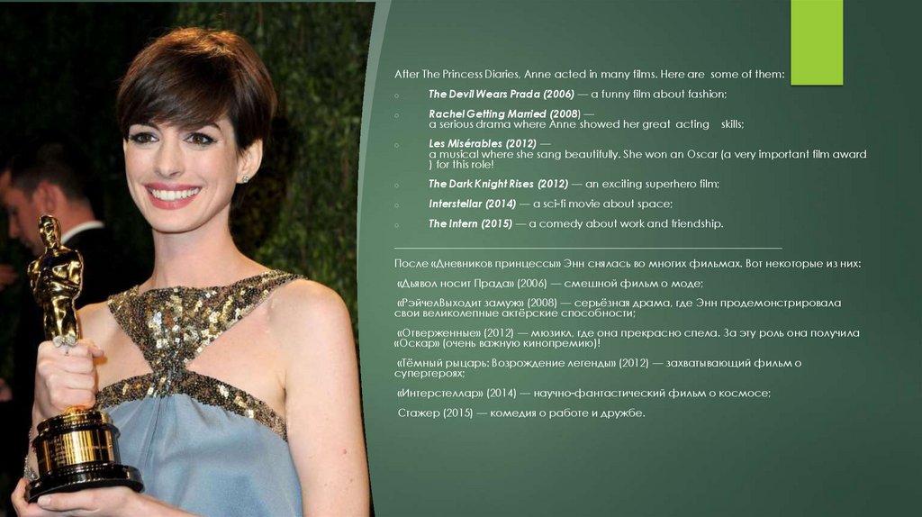 1. Anne Hathaway ___________ Анна Хэтэуэй