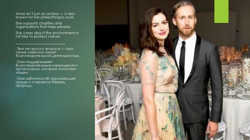Anne isn’t just an actress — is alsoknown for her philanthropic work.