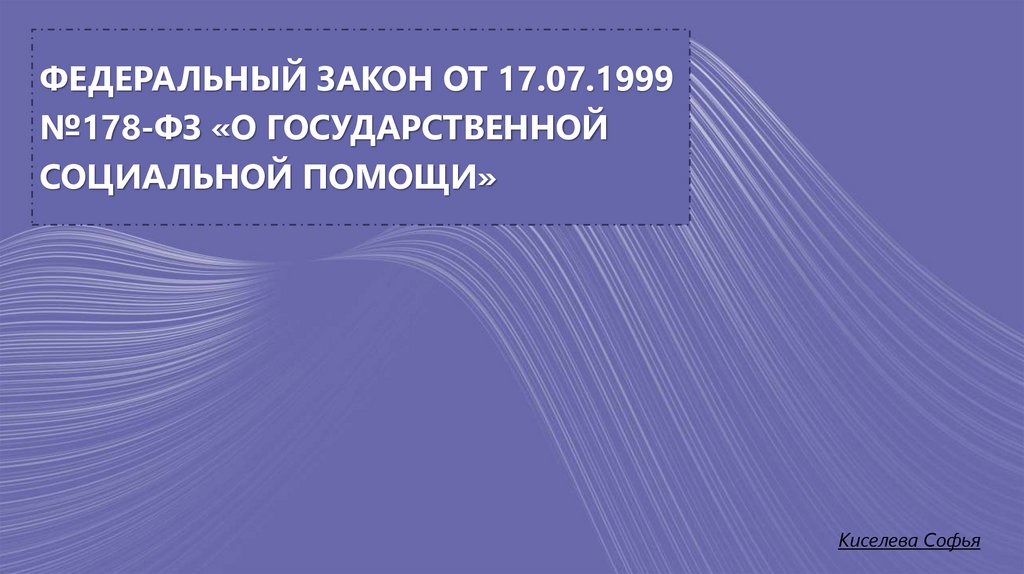 1. Федеральный закон от 17.07.1999 №178-ФЗ «О государственной социальной помощи»