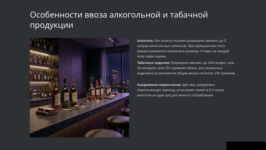 Особенности ввоза алкогольной и табачнойпродукции