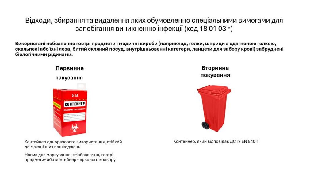 матеріали і коробку для безпечної утилізації шприців;