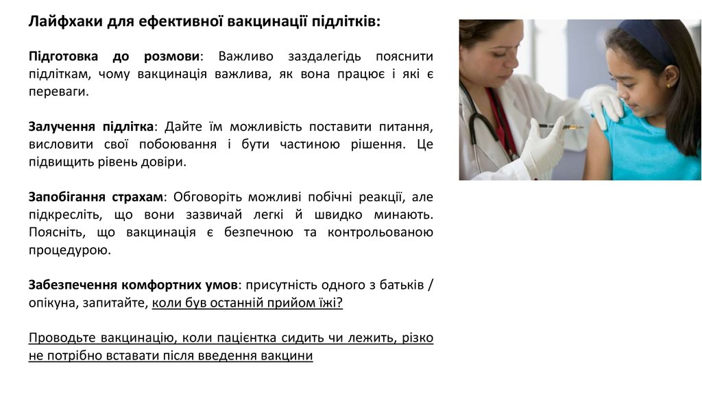Лайфхаки для ефективної вакцинації підлітків:Підготовка до розмови: Важливо заздалегідь пояснити