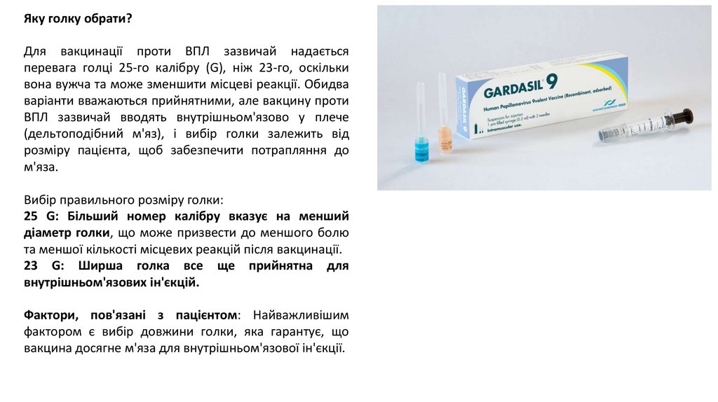 Яку голку обрати?Для вакцинації проти ВПЛ зазвичай надається
