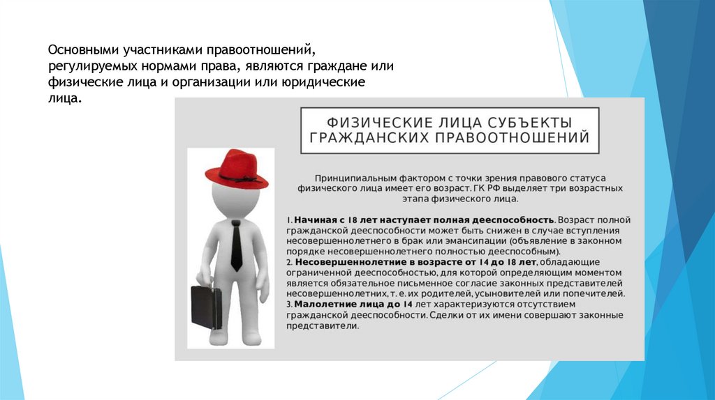 Основными участниками правоотношений,регулируемых нормами права, являются граждане или