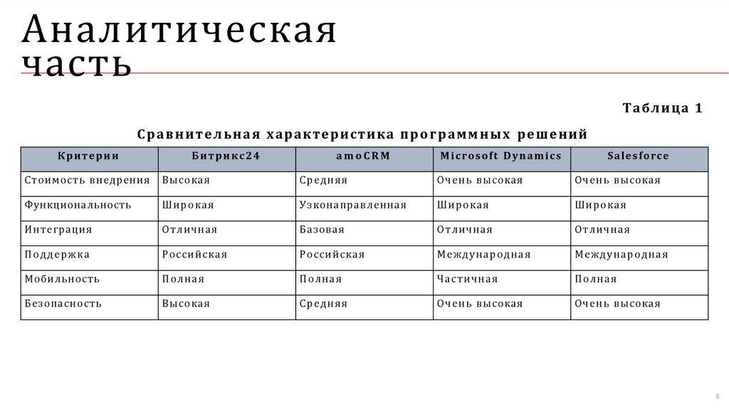 С р а в н и т е л ь н а я х а р а к т е р и ст и к а п р о г р а м м н ы х р е ш е н и й