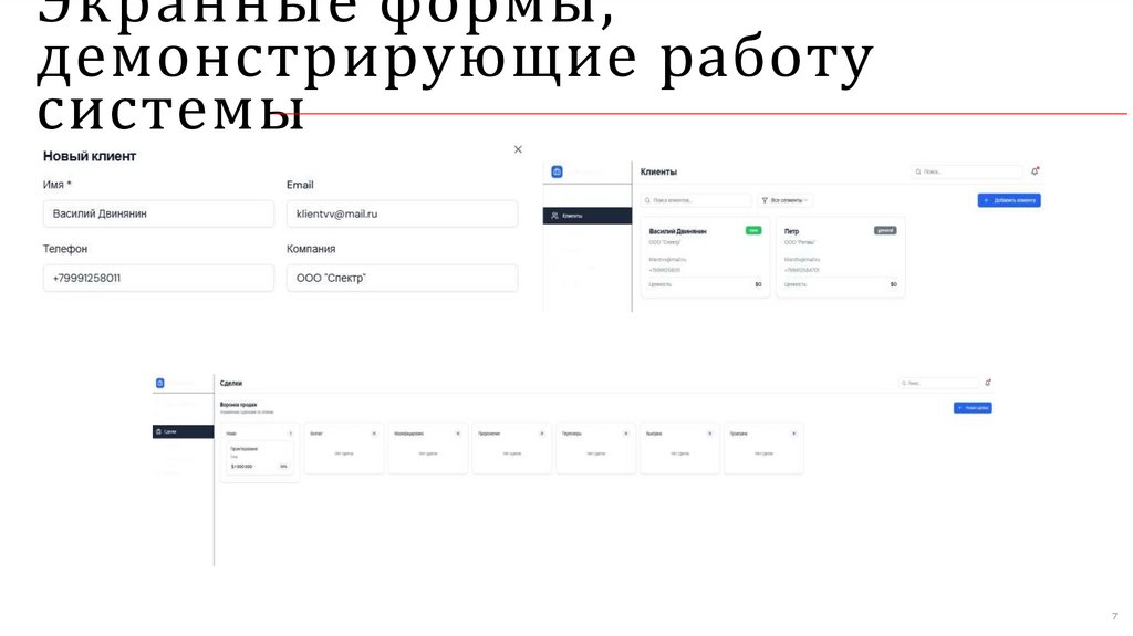 Экранные формы,демонстрирующие работу