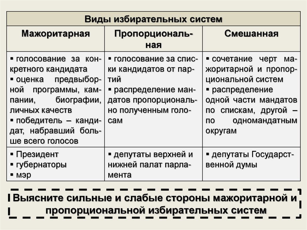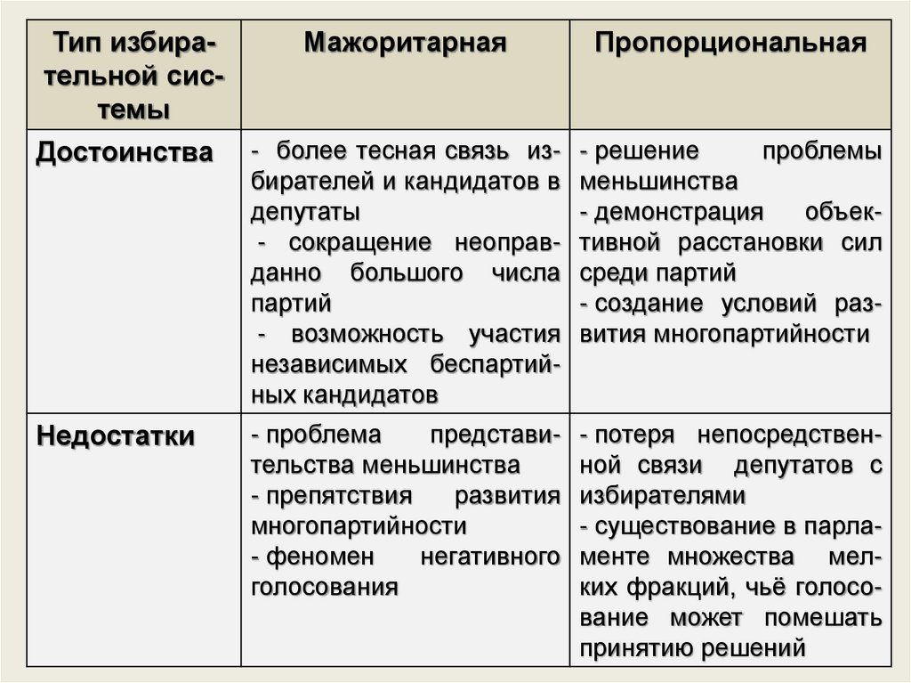 выборных органов власти, система распределения мест в них после проведения выборов.