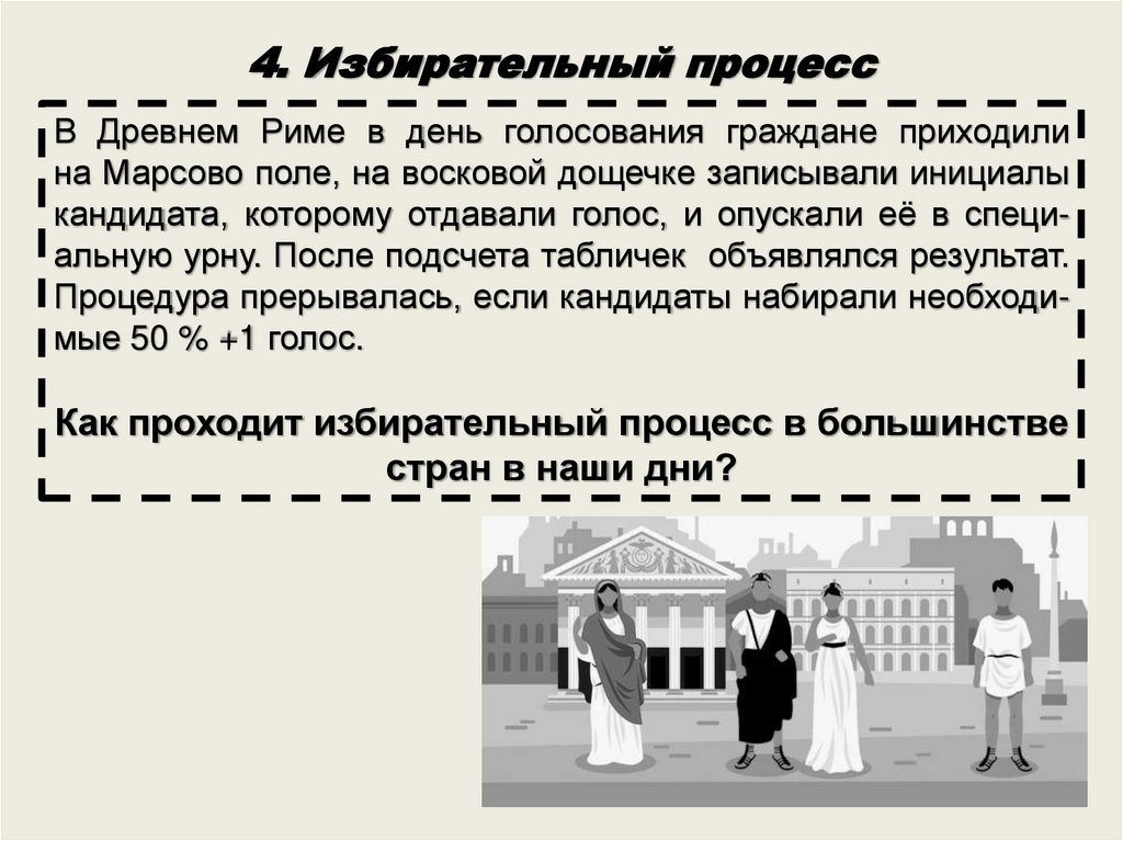 4. Избирательный процессВ Древнем Риме в день голосования граждане приходили