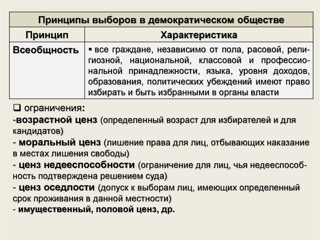 - ценз недееспособности (ограничение для лиц, чья недееспособность подтверждена решением суда)