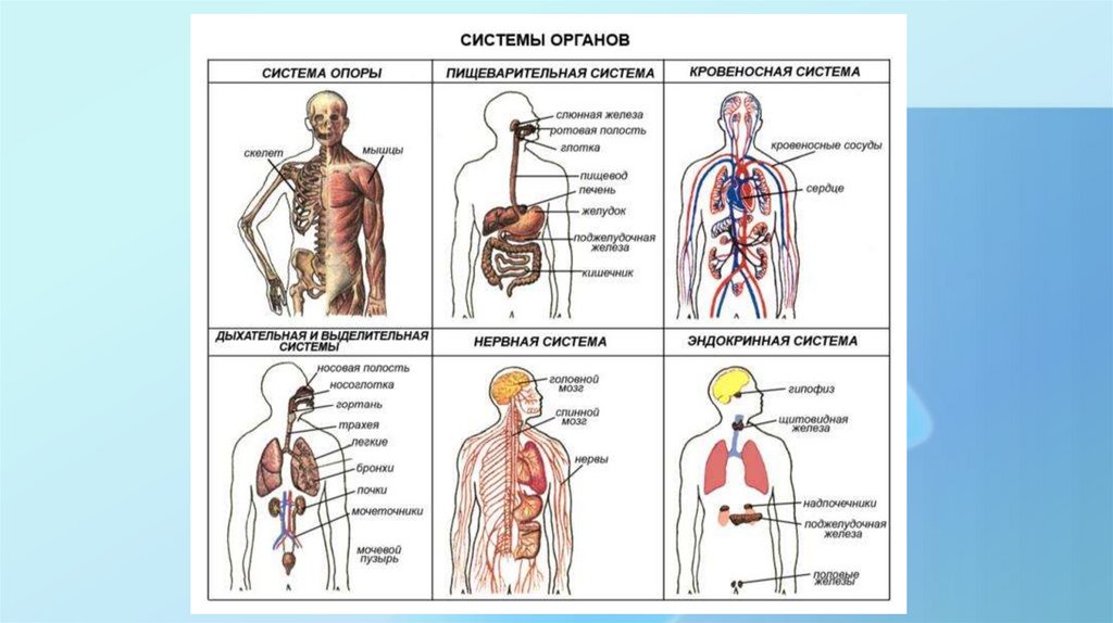 жизнедеятельности. К ним относятся нервная, кровеносная, дыхательная, опорно-двигательная, пищеварительная, выделительная,