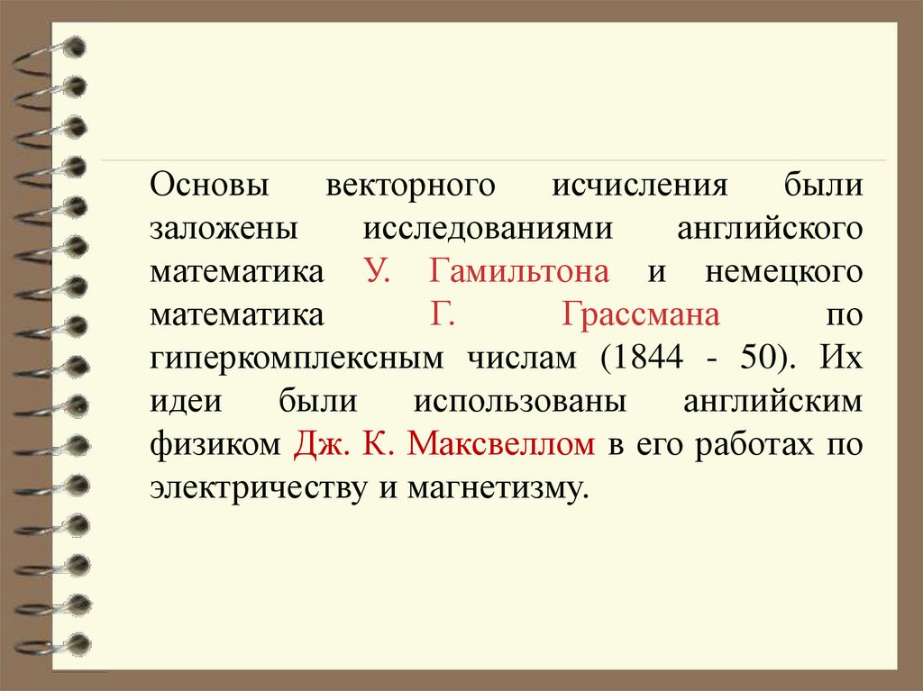 Возникновение векторного исчисления тесносвязано с потребностями механики и физики.