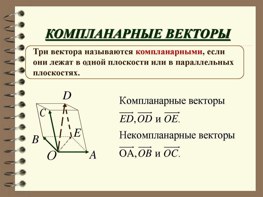 КОМПЛАНАРНЫЕ ВЕКТОРЫТри вектора называются компланарными, если